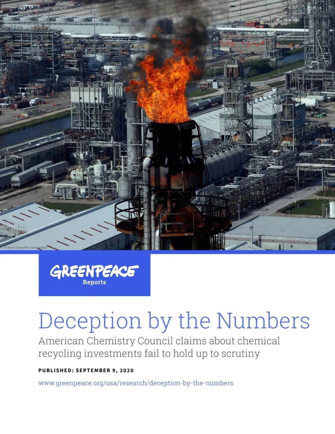 2020年9月,国际环保组织绿色和平(Greenpeace)发布了一份题为《数字假象》(Deception by the Numbers)的报告,该报告尖锐地指出:化学回收是制造和销售塑料的企业以及它们的上级代理机构美国化学理事会(ACC)用以误导投资者的虚假概念。我们根本无法通过化学回收,摆脱塑料污染危机。